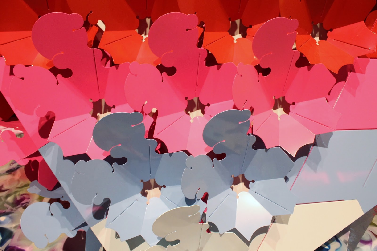 This weekend I was lucky enough to go see Elena Manferdini’s indoor temporary pavilion, Tempera. This installation was part of an exhibition called A New Sculpturalism, at the Geffen Museum Of Contemporary Art in L.A. It was amazing to see the design, and the detail up close was remarkable. What attracted me the most to this exhibit were the colors. I love the neon trend in fashion, and now in art. Manferdini is a young artist and architect with her own design firm, who currently teaches at the Southern California Institute of Architecture. You may find more information on her here. Her art is inspiring, innovative eye candy. Enjoy the pictures!