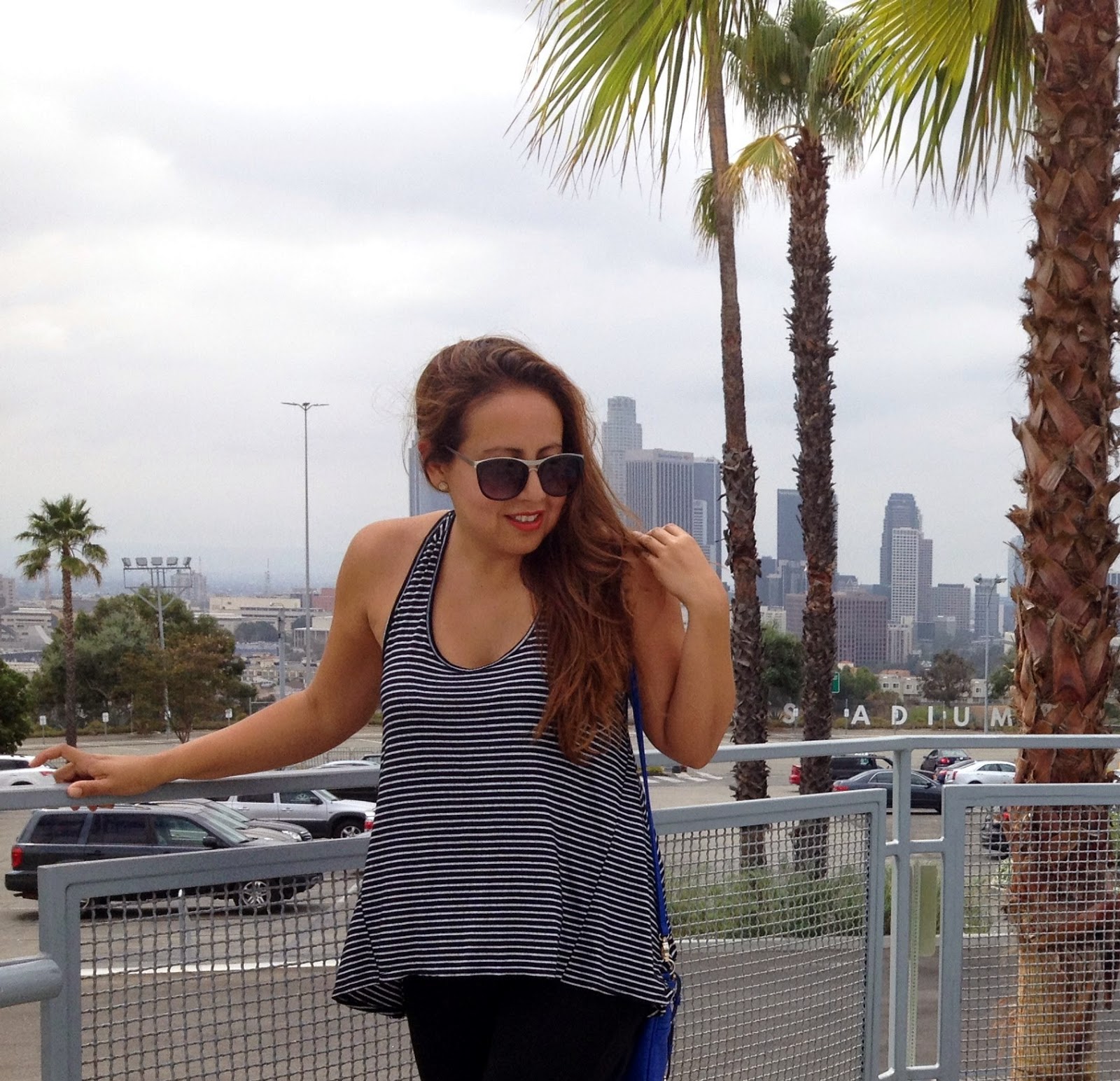 In the pictures here I am at Dodger Stadium in L.A. Trust me, not because I’m a fan. Even though I am not a big sports fan, I will always root for the San Francisco Giants because that’s where I spent part of my childhood. I still feel like it’s my home. I was at Dodger Stadium with my cousin Evelyn to pick up her goodie bag for her 5K race over the weekend. My cousin is a runner! I’m so proud of her, and anyone who lives a fit life style. She called me up and I was happy to go. She took these pictures of me right outside the stadium. I loved the view and couldn’t waist the opportunity. Isn’t the city in the background so cool! I loved it.