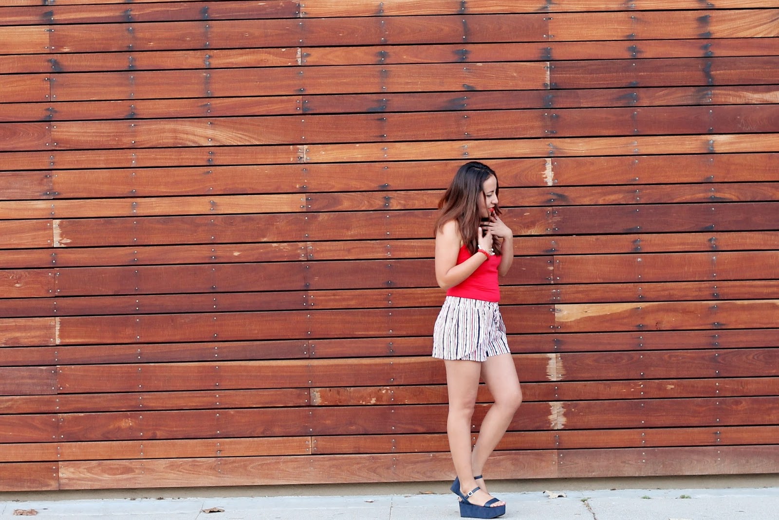 Top-Zara/Shorts and sandals-Forever21/Charm Bracelet-Loft/Red Bracelets-World Market
