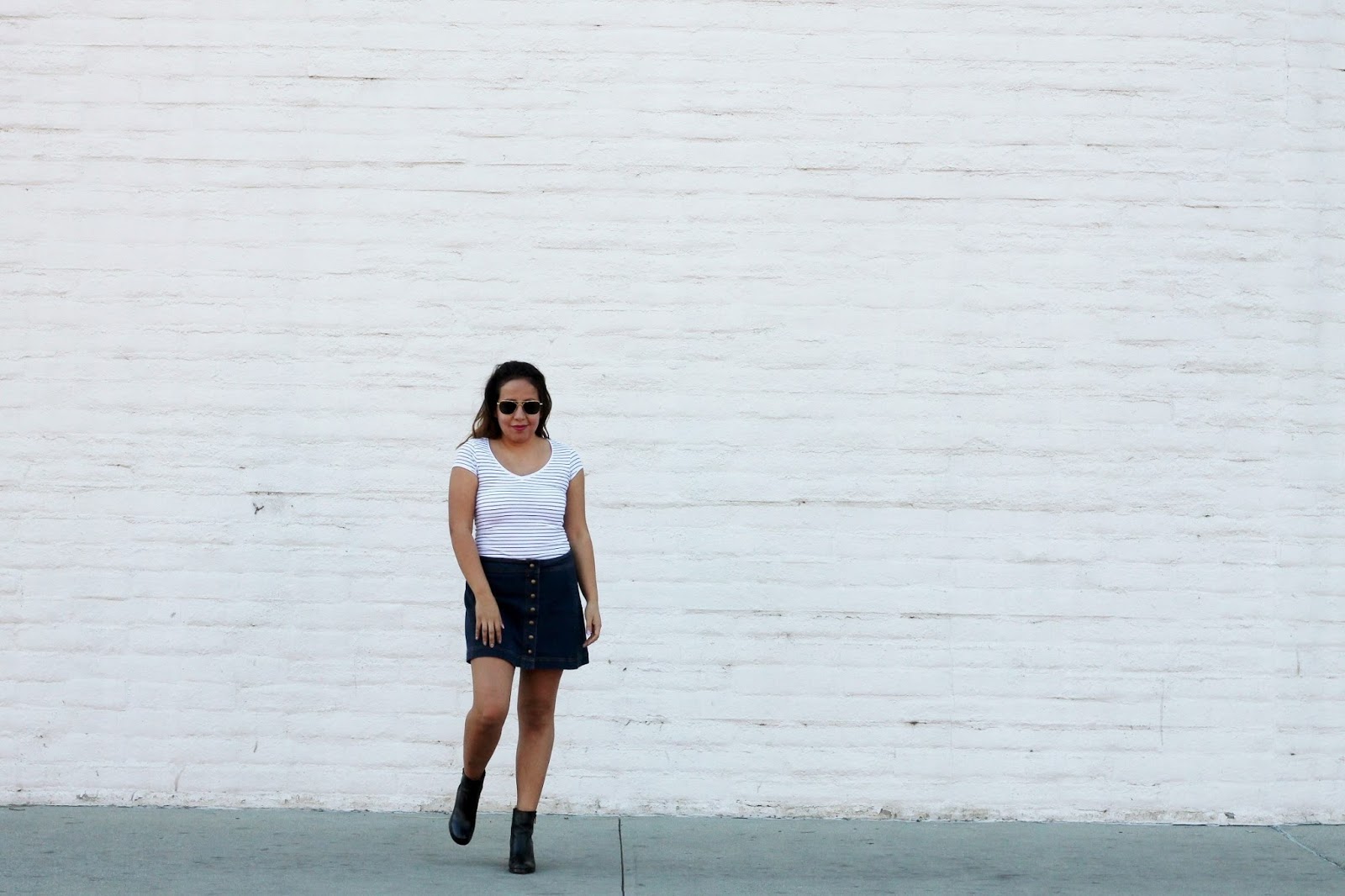 I am so happy with this skirt, the button detail is what I love the most. The buttons are actually supposed to be worn asymetrically to the side, but I like them in the middle. The skirt is everything I was looking for in a jean skirt and more. I plan to style it with so many other shoes this summer. Are you into jean skirts? It is following the 70’s trend that has taken over the fashion world, but I went with a more modern look. Psssst…over here, if you didn’t know I’m not much of a trend follower anyway. If I do follow any trend, I like to give it my own special touch.