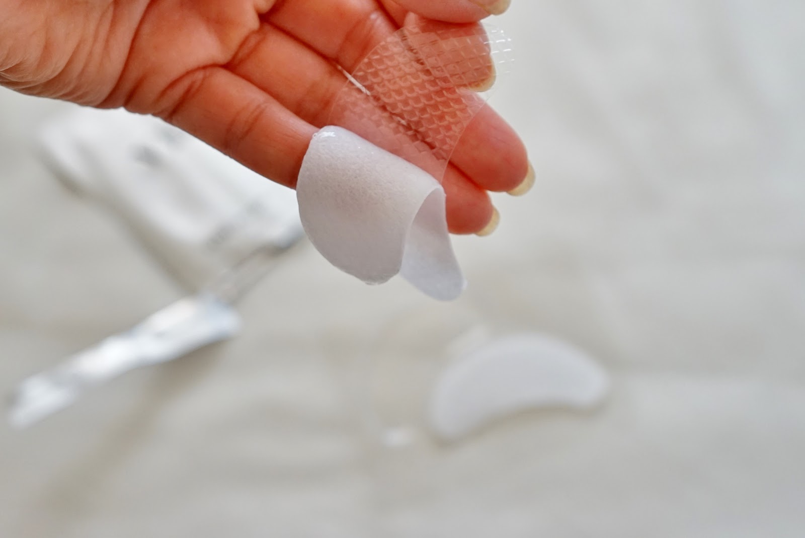 When I first tore open the aluminum bag and took out the eye masks they felt cool to the touch. When placing them around my eyes and pressing gently it felt like a tiny massage. It is suggested that you press on them to help your skin absorb the nourishment in the mask. I actually enjoyed doing this! The rest is super easy, just go to sleep.